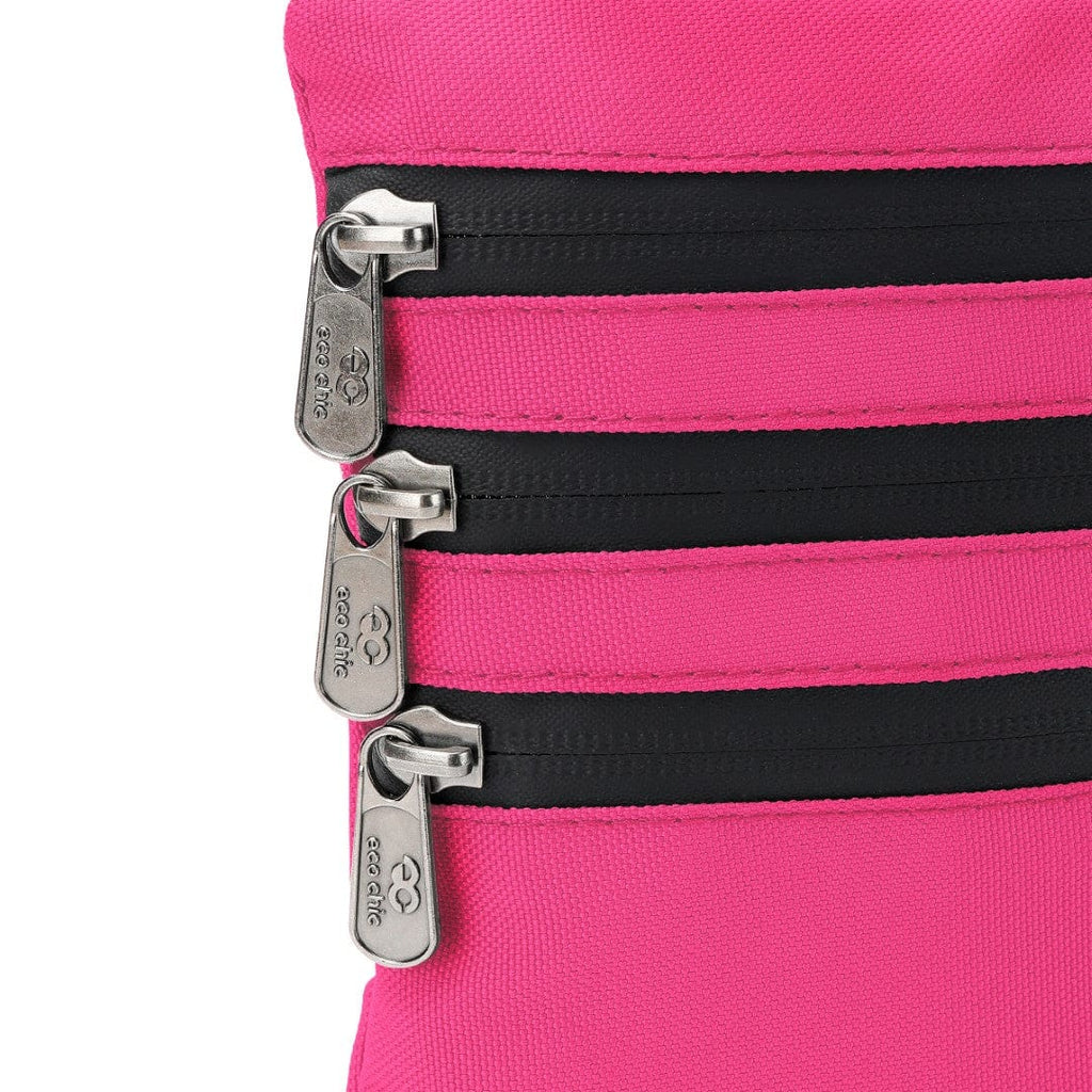 The Eco Chic Phone Crossbody Bag features four zippered pockets for organized storage of phones, keys, cards, and cash, ensuring every item has its place!